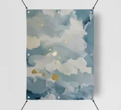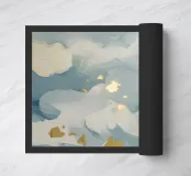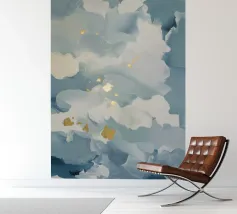 Soft blooming clouds burst with flickers of gold in quiet, misty rhythm.