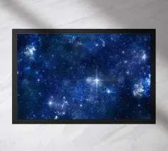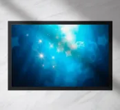 Deep blue hues create a calming backdrop filled with sparkling light effects. T