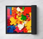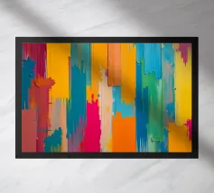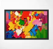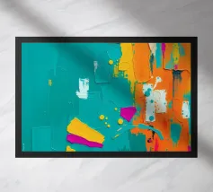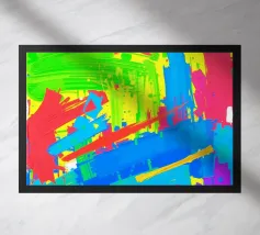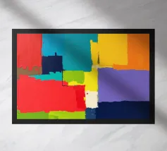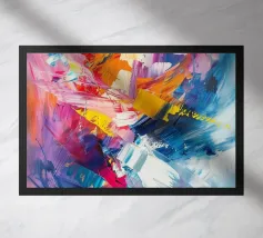Vivid colors blend together in dynamic shapes, creating a joyful and energetic composition. The assortment of hues offers a striking visual experience filled with movement.