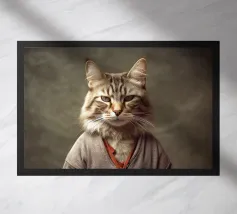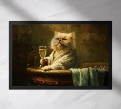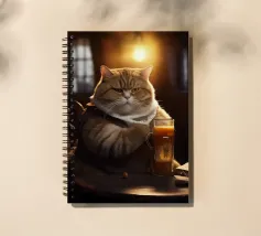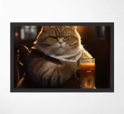 cat cat in clothes mug of beer beer wooden table book hooded lantern dim lighting indoors lamp furry animal wooden chair seated cat paws beer mug handle window amber light detailed fur white ruff bulbous mug