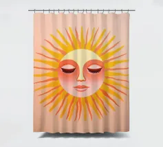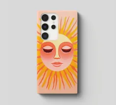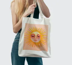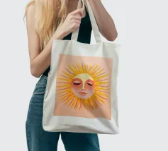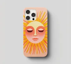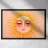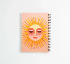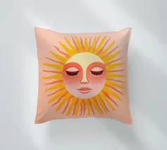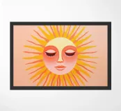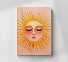 Whimsical stylized boho sun face painting in a warm colorful boho style