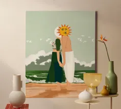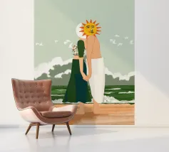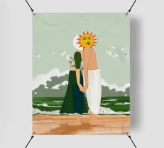Celestial Union sun moon love romance romantic birds people companion friends ocean sea beach man woman couple passion