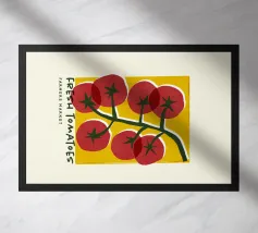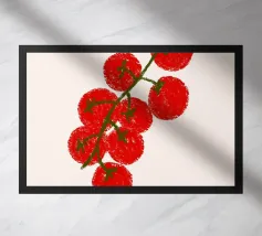 Cherry tomatoes are a delightful and versatile addition to any culinary repertoire. These small, bite-sized fruits pack a punch of flavor and are favored by foodies around the world. Whether you enjoy them in salads, sauces, or simply straight off the vine, cherry tomatoes offer a burst of sweetness and acidity that brightens up any dish. Decor your kitchen with this modern and refreshing red tomato illustration with mustard yellow background.