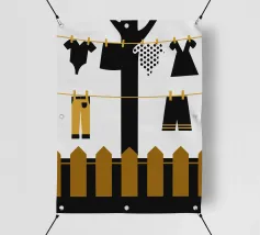 This "Drying Clothes" design offers a modern and colorful illustration of the clothes drying process.