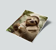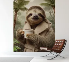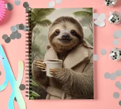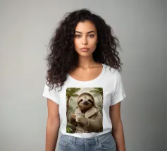 Cute sloth with coffee for children and sloth fans.