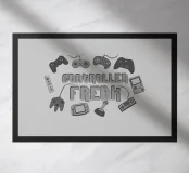 A collection of iconic video game controllers wrap the words "Controller Freak" in a retro design. Perfect for those who have a passion for consoles and gamer nostalgia. Ideal for players who collect memories and achievements in the world of games!