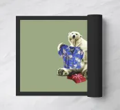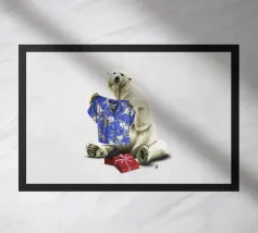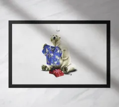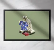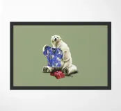 The effects of global warming are not a laughing matter, but sometimes a humorous approach to showing their affects can help. The polar bear is bemused by his new gift; a Hawaiian shirt!