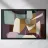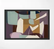 A cubist-style painting with fragmented shapes and a muted color palette. The artwork evokes complexity and depth.