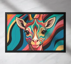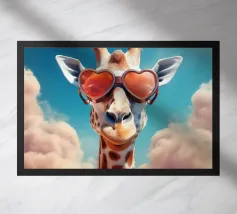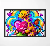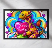 Bring home a touch of cuteness and warmth with this adorable design! Featuring a charming giraffe lovingly hugging a heart-shaped pillow on a fluffy cloud, all surrounded by vibrant rainbow hues. This playful and love-filled design is perfect for adding a cheerful vibe to any room, making it a delightful companion for cozy moments or as an eye-catching decorative piece. Perfect for: Adding a splash of fun to a child's room or as a unique gift for someone special.