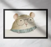 Cute mouse with glasses, nursery art, kid's room