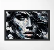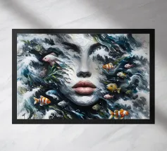 Painting of the sea, waves and a female.