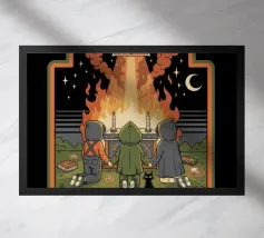 A group of hooded cultists stands in a dark ritual circle, accidentally summoning an adorable orange kitten instead of a fearsome demon. This design hilariously mixes the spooky aesthetic of dark magic with the unexpected cuteness of a floating cat. Perfect for cat lovers, goth geeks, and anyone who appreciates a bit of chaos.