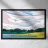 A landscape painting focusing on a dramatic, swirling sky filled with stylized white clouds above a serene river or lake. The artwork captures the majestic and ever changing beauty of the sky.