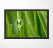 Green grass with a heart-shaped drop of water