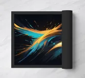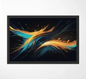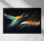 Vibrant and dynamic abstract design features swirling lines in orange and turquoise against a dark backdrop, perfect for use as wallpaper or digital art decoration.