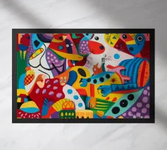 Bold shapes and vivid hues create a striking and engaging composition. This painting captures the spontaneity and joy of artistic exploration, inviting viewers to revel in the creative process.