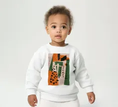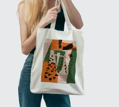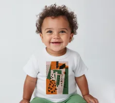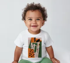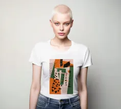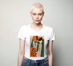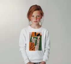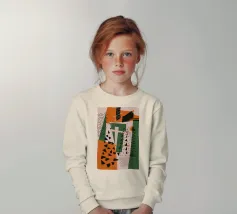 A dynamic collage of clashing patterns and textures, including dots, stripes, and abstract scribbles. The composition in beige, black, and red is a bold and eclectic statement, celebrating creative chaos.