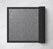 This setting showcases elegant wallpaper featuring a detailed floral and damask pattern in soft silver and grey tones, perfect for enhancing any room's decor.
