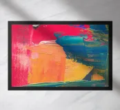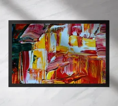Bold strokes of vibrant colors such as red, yellow, green, and blue create an energetic abstract composition. The interplay of different hues adds depth and dynamism to the visual experience.