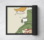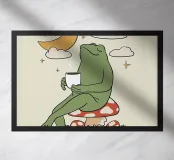 “Everything is Figureoutable” features a serene frog sitting peacefully on a mushroom, sipping a warm drink under the moon and stars. This calming artwork inspires optimism, patience, and the belief that every problem has a solution. A delightful piece to encourage resilience, positivity, and mindfulness in everyday life.