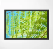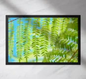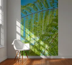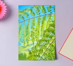A fern leaf with delicate, feather-like fronds unfolding in graceful symmetry.