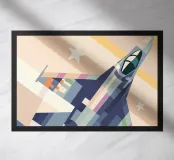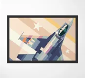 Get an illustration of a modern fighter jet in a starry sky with a dynamic geometric style.