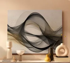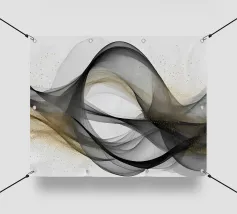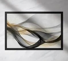 Created by Florence Thibaut. Atelier-88 - Paris A bold, lively, incisive abstract motif, with a touch of dynamic energy that symbolises movement and lightness. Black and gold colours evoke themes such as gold dust, ink, evanescence and vibration. A sensitive approach to lyricism and modernity for contemporary, minimalist interiors. A unique visual language that transcends cultural boundaries.