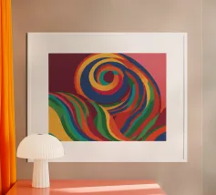A bold abstract pattern with a touch of dynamic energy that symbolises movement and fluidity. Bright colours to evoke themes such as water, life and movement. An innovative fusion of tradition and modernity for contemporary, minimalist interiors. A unique visual language that transcends cultural boundaries.