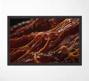 A mesmerizing display of fluid dynamics where orange and red liquid layers swirl and intertwine across a textured surface, creating an intricate visual.