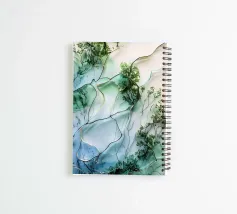 A mesmerizing abstract artwork depicting a forest submerged in a flowing, ethereal liquid. The golden veins and delicate green hues create a sense of tranquility and wonder.