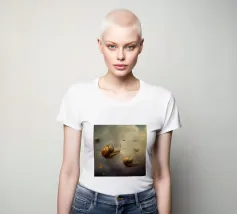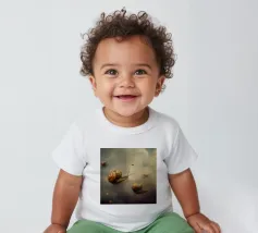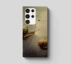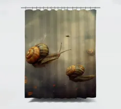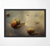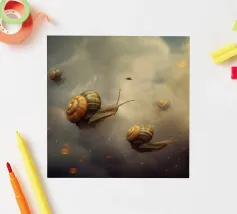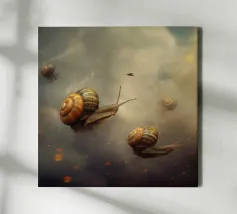 A surreal composition featuring snails gliding effortlessly through a dreamy sky filled with soft clouds and scattered glowing embers. The whimsical scene blends fantasy and nature, creating a unique and magical atmosphere with delicate, otherworldly charm.