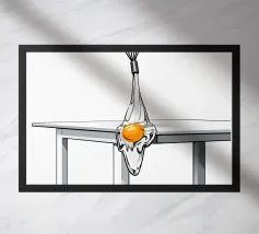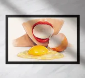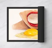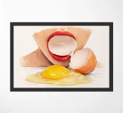 This artwork is taken from a video performance I created, exploring freshness, sensuality and everyday objects in a playful, minimalist way. The soft watercolor style and clean composition focus on a pair of red lips interacting with an egg, transforming a simple scene into a bold and intriguing visual statement. Perfect for modern kitchens, creative studios, and contemporary interiors. fresh minimal watercolor poster egg art lips pop art contemporary kitchen art surreal conceptual sensual bold colors modern wall art food art