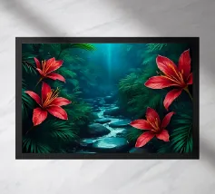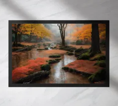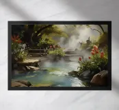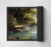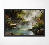 Đây là một giai điệu êm đềm của thiên nhiên. Nước trong vắt lướt qua những tảng đá rêu phong, len lỏi giữa những tán cây xanh mướt, tạo nên một khung cảnh yên bình và đầy thơ mộng. Ánh nắng lấp lánh xuyên qua kẽ lá, vẽ nên những vệt sáng lung linh trên mặt nước, như những điệu nhảy của ánh sáng và bóng tối. Bức tranh gợi lên cảm giác thư thái, sự tĩnh lặng và nỗi nhớ về một miền quê yên ả, nơi tâm hồn được gột rửa và tìm thấy sự bình yên.