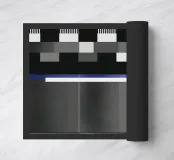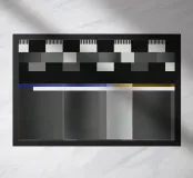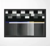 A digital pattern displays a series of geometric shapes with a variety of colors, resembling a TV test screen. Parallel lines and rectangles create a structured and vibrant composition.