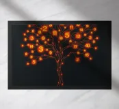 A stunning piece of digital art that reimagines the classic Tree of Life as a luminous, interconnected network of numbers. Each glowing branch and root is intricately detailed with binary digits, creating a captivating fusion of nature and technology. This unique artwork is perfect for anyone fascinated by coding, computer science, or the beautiful complexity of the digital world. The warm, fiery glow against a dark background makes this a mesmerizing statement piece for any modern home, office, or study.