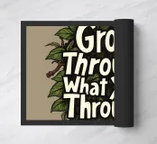 This inspiring artwork features the phrase "Grow Through What You Go Through" surrounded by lush green foliage. It serves as a powerful reminder that challenges and obstacles can be opportunities for growth and transformation. The vibrant colors and hand-drawn style create a visually appealing and uplifting piece that will add a touch of positivity to any space.
