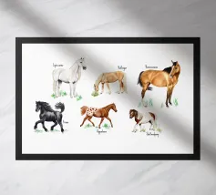 Der Haflinger - ein robustes und vielseitiges Pony mit viel Ruhe und Gelassenheit. Schaue dir auch gerne meine anderen illustrierten Pferderassen an! Alle meine Illustrationen sind handgefertigt und stecken voller Liebe zum Detail. Bei Bedarf kannst du die Anordnung der Elemente noch etwas nach deinen Wünschen anpassen.