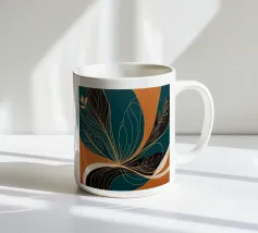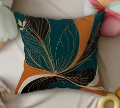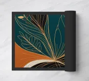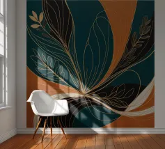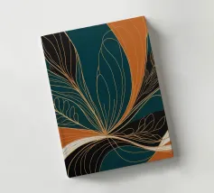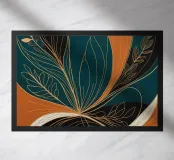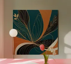 This captivating abstract artwork draws inspiration from the beauty of nature, blending organic forms with bold colors and delicate lines. The vibrant teal background serves as a canvas for a mesmerizing interplay of golden and black elements, creating a sense of movement and energy. The artwork evokes a feeling of harmony and balance, inviting viewers to explore the intricate details and appreciate the beauty in the abstract.