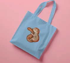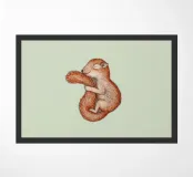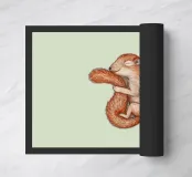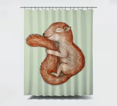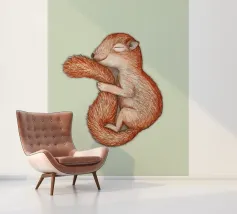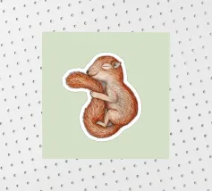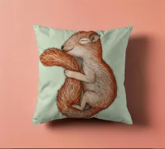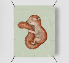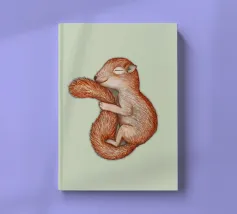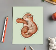 A cute red squirrel in hibernation, cuddling its own tail. Pencil drawing.