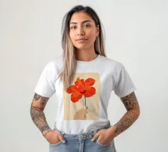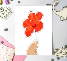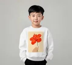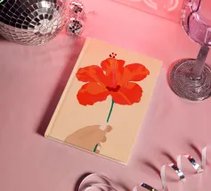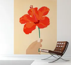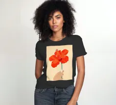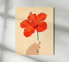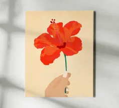 "Hibiscus Affection" showcases the gentle embrace of an orange hibiscus in hand, capturing the warmth and tenderness of human connection with nature. The vibrant bloom symbolizes love and tranquility, offering a moment of serene beauty.