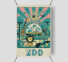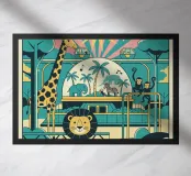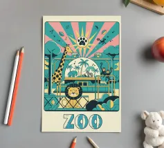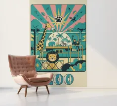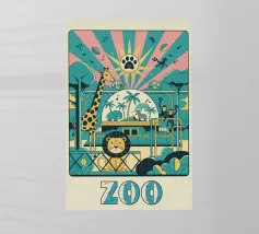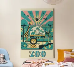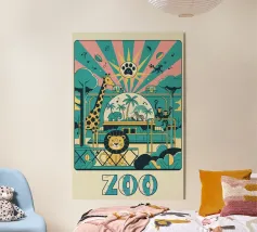 Pour chambre d'enfant , affiche illustré et dessiné représentant le zoo