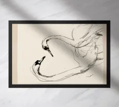 Experience the striking duality and profound unity in Hilma af Klint's "Group IX-SUW, The Swan, No. 1" (1915). This iconic abstract work masterfully depicts a white swan and a black swan mirrored, their beaks touching, against a stark black and white divided background. It symbolizes the harmonious balance of opposing forces and spiritual connection. Klint's pioneering role in abstract art is powerfully conveyed through her symbolic composition and bold use of contrast. Our premium digital poster, rendered at a stunning 7000x5000 pixels and 300 dpi, impeccably reproduces every intricate detail
