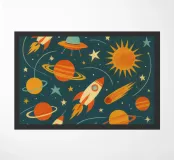 Embark on a cosmic journey with this captivating space-themed wallpaper design. Featuring vibrant rockets, colorful planets, and radiant stars, this artwork brings the wonders of planetary exploration into your home. Perfect for nurseries, playrooms, or any space enthusiast’s domain, this eye-catching design sparks imagination and curiosity. Create an inspiring environment that invites adventure and discovery, awakening dreams of interstellar travel and astronomical exploration.