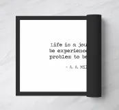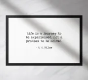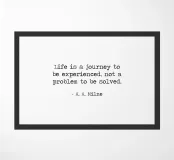 "Life is a journey to be experienced not a problem to be solved" - famous Winnie The Pooh A. A. Milne Quote minimalist black and white typewriter typography word art famous saying.