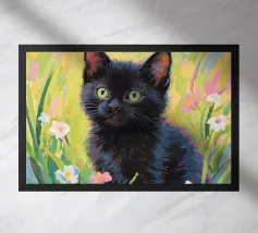 This black cat in a Darth Vader helmet combines pop culture with classic painting: the gloomy helmet meets softly painted flowers and delicate brushstrokes - an unusual mixture of menace and idyll. A humorous, stylish statement for anyone who loves cats and knows the dark side. Perfect for modern living spaces with a wink.