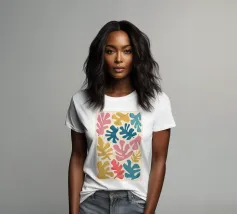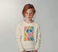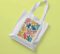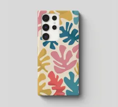 A pattern of stylized, organic leaf shapes in ochre and cream, reminiscent of Henri Matisse cut outs, creating a classic and sophisticated botanical design.