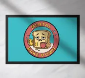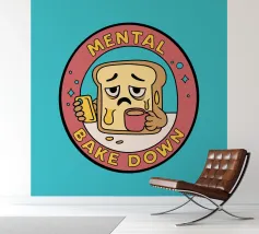A slice of bread with a tired face holds a cup of coffee and a phone, surrounded by a badge that reads “Mental Bake Down.” This illustration plays on the phrase “mental breakdown” with a delicious twist — perfect for those days when you're feeling just a little too toasted. Ideal for coffee lovers, introverts, and anyone who uses humor to cope with life’s daily meltdowns.