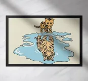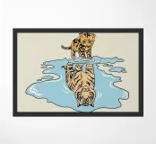 This motivational artwork features a small kitten gazing into a puddle, where its reflection shows a powerful tiger. With the inspiring quote “Mindset is Everything – Progress Starts with Perspective,” it symbolizes confidence, self-belief, and growth. A perfect reminder that perspective shapes potential and dreams begin with mindset.