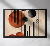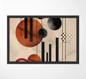 This impressive design combines geometric shapes with a warm colour palette of earth tones, black and red. The combination of vertical lines, circles and curved elements creates a harmonious balance between structure and dynamism. Perfect for murals, mugs, mobile phone cases or cushions - a must-have for modern art lovers who want to add a timeless, artistic touch to their home or everyday life.
