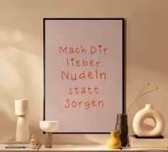 Discover the cheerful and energetic design "MOIN - North German joie de vivre". This eye-catching poster combines bold vertical stripes in orange and pink with the charming lettering "MOIN" in curved yellow handwriting. The stripes have a slightly irregular, painted texture that gives the design a playful, artistic touch. The word "MOIN" - a well-known greeting from northern Germany - takes centre stage and gives the design a friendly and inviting atmosphere.